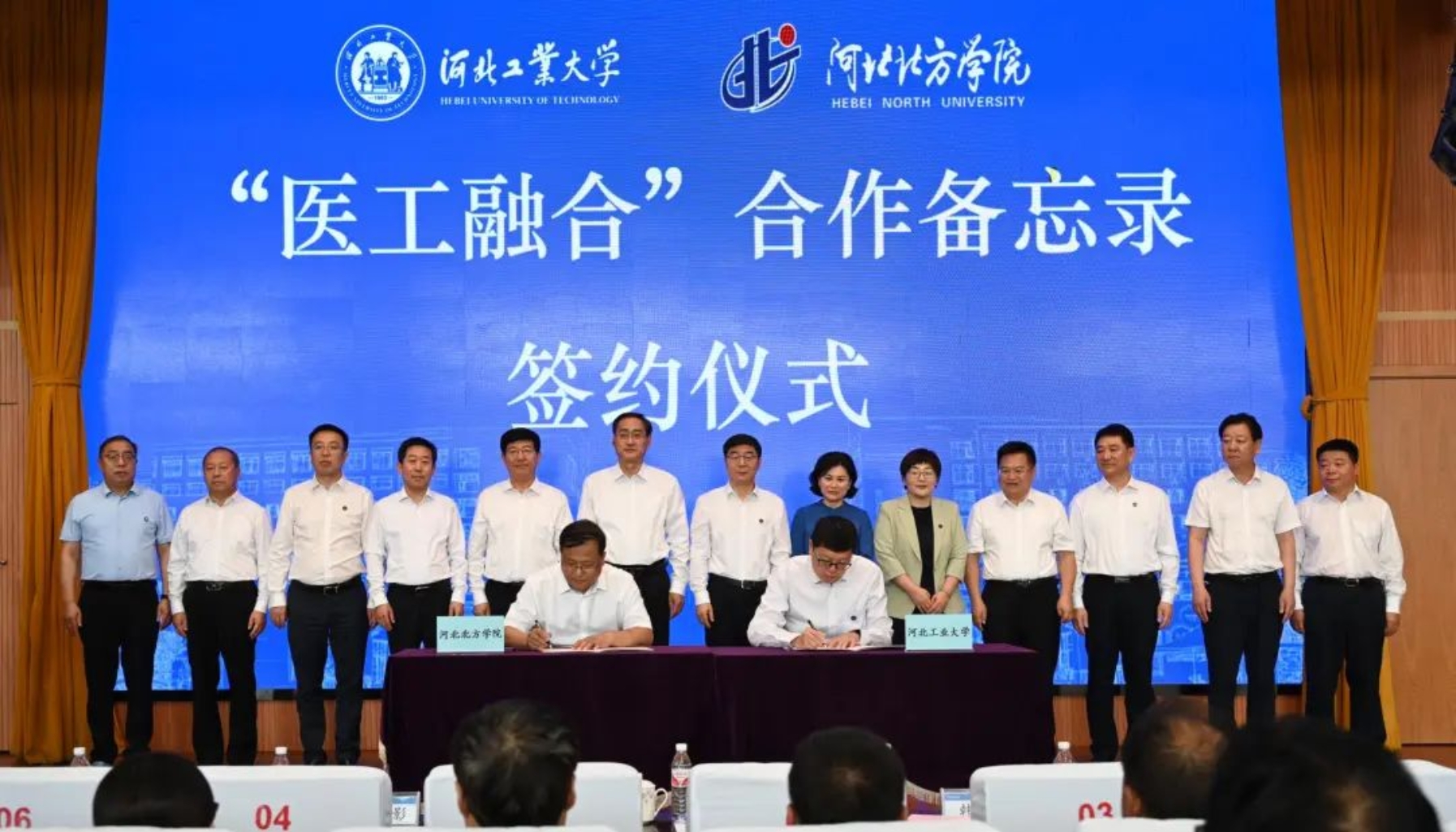 河北多多28生命科学与健康工程学院院长杨磊与河北北方学院附属第一医院党委副书记薛军共同签署了“医工融合”合作备忘录。