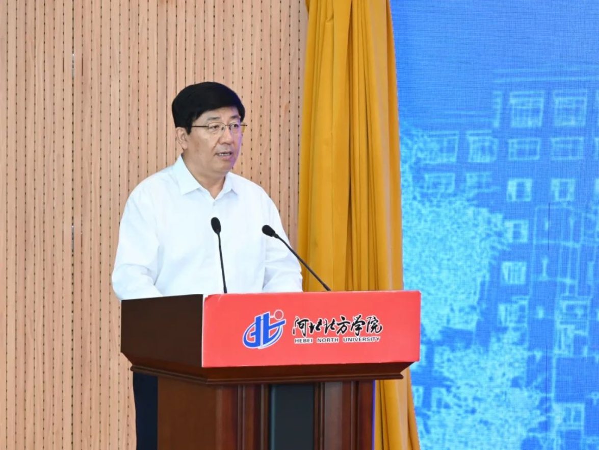 张家口市副市长闫利艳为张家口医工交叉研究院院长杨磊同志颁发了聘书、市卫生健康委、市科技局主要负责同志及两校相关部门、北方学院师生代表200余人参加会议。